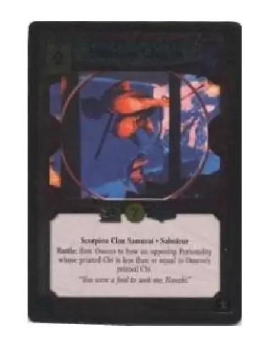 Scorpion Clan Samurai. Saboteur Battle: Bow Omezo to bo an opposing Personality whose printed Chi is less than or equal to Omezo's printed Chi.