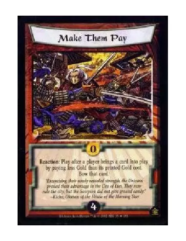 Reaction: Play after a player brings a card into play by paying less Gold than its printed Gold cost. Bow that card.