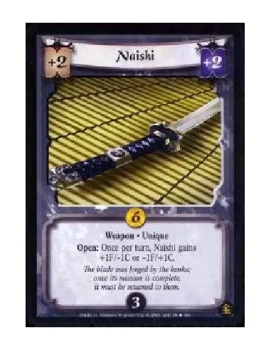 Weapon * Unique Open: Once per turn, Naishi gains +1F/-1C or -1F/+1C. The blade was forged by the kenku; once its mission is complete, it must be returned to them.