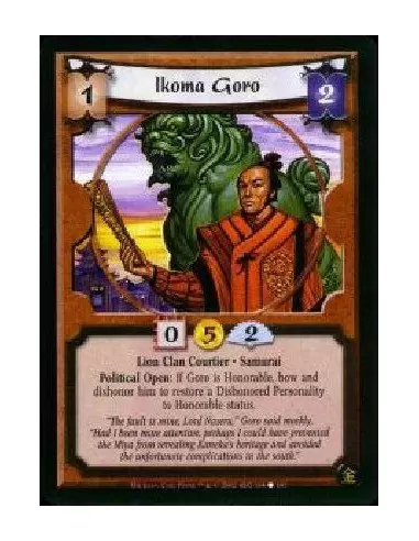 Lion Clan Courtier * Samurai Political Open: If Goro is honorable, bow and dishonor him to restore a dishonored personality to honorable status.