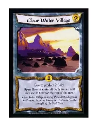 Bow to produce 2 Gold. Open: Bow to make all cards in one unit immune to Fear for the rest of the turn. Clear Water Village is one of the oldest villages in the Empire; its proud history is a testament to the strength of the Crab Clan.