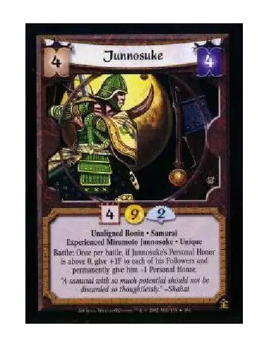 Unaligned Ronin * Samurai * Experienced Mirumoto Junnosuke * Unique Battle: Once per battle, if Junnosuke's Personal Honor is above 0, give +1F to eash of his Followers and permanently give him -1 Personal Honor.