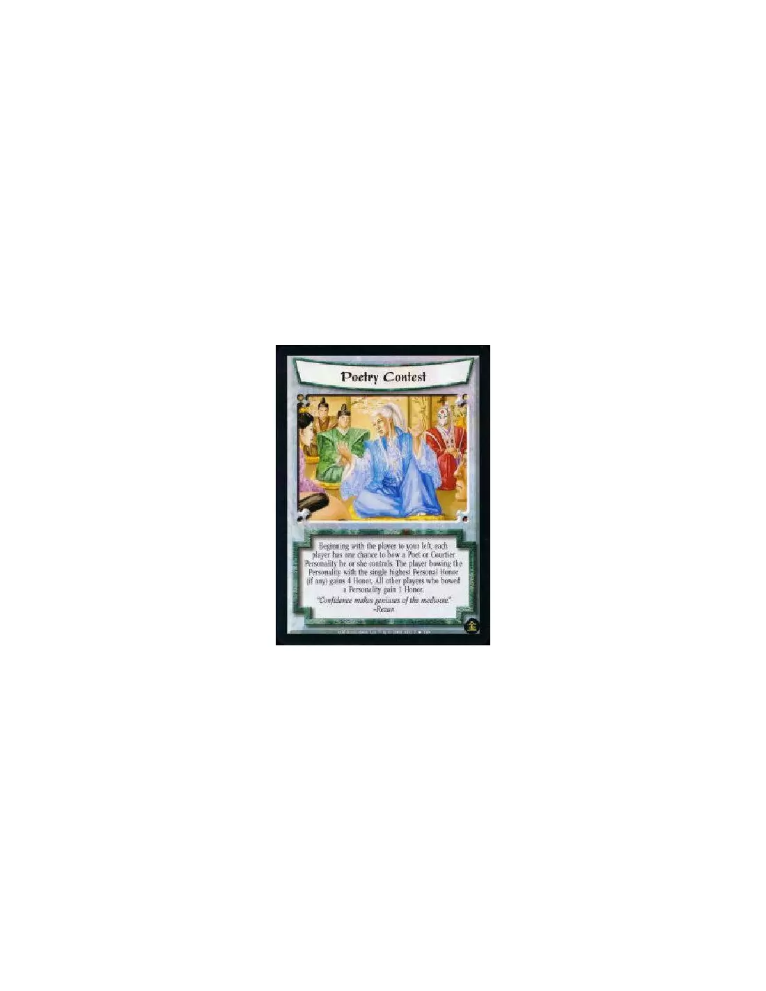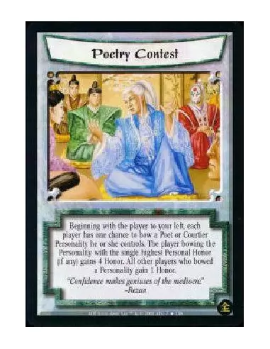 Beginning with the player to your left and proceeding in turn order, each player has one chance to bow a Poet or Courtier Personality he controls. The Personality with the single highest Personal Honor, if any, gains 4 Honor. All other players who bowed a Personality gain 1 Honor.