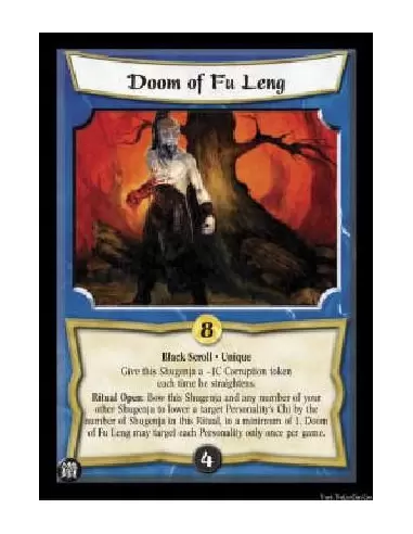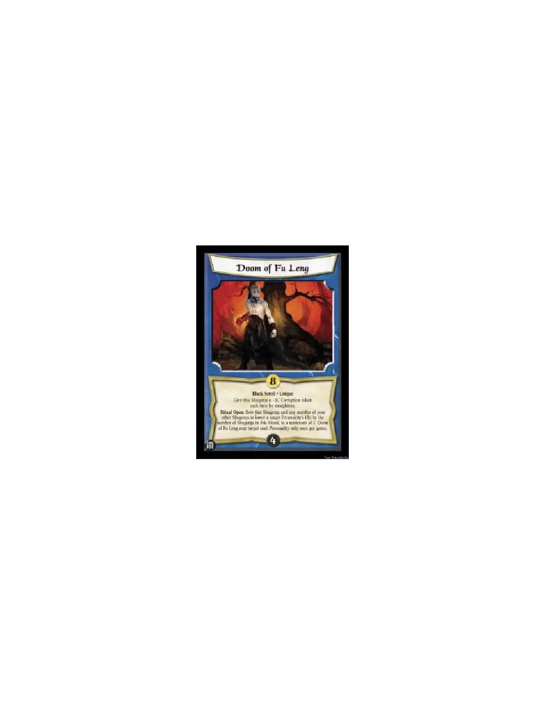 Black Scroll * Unique Give this Shugenja a -1C Corruption token each time he straightens. Ritual Open: Bow this Shugenja and any number of your other Shugenja to permanently lower a target Personality's Chi by the number of Shugenja in this Ritual, to a minimum of 1. This effect may target each Personality once per game.