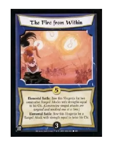 Elemental Battle: Bow this Shugenja for two consecutive Ranged Attacks with strengths equal to his Chi. (Consecutive ranged attacks are targeted and resolved one at a time.) Elemental Battle: Bow this Shugenja for a Ranged Attack with strength equal to twice his Chi.