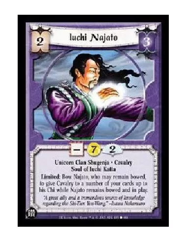 Unicorn Clan Shugenja * Cavalry Soul of Iuchi Katta Limited: Bow Najato, who may remain bowed, to give Cavalry to a number of your cards up to his Chi while Najato remains bowed and in play.