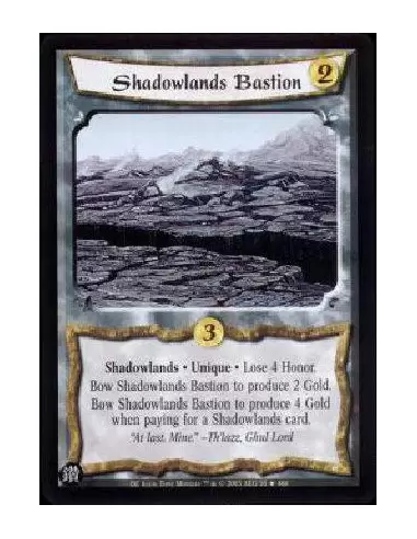Shadowlands * Unique * Lose 4 Honor. Bow Shadowlands Bastion to produce 2 Gold. Bow Shadowlands Bastion to produce 4 Gold when paying for a Shadowlands card.