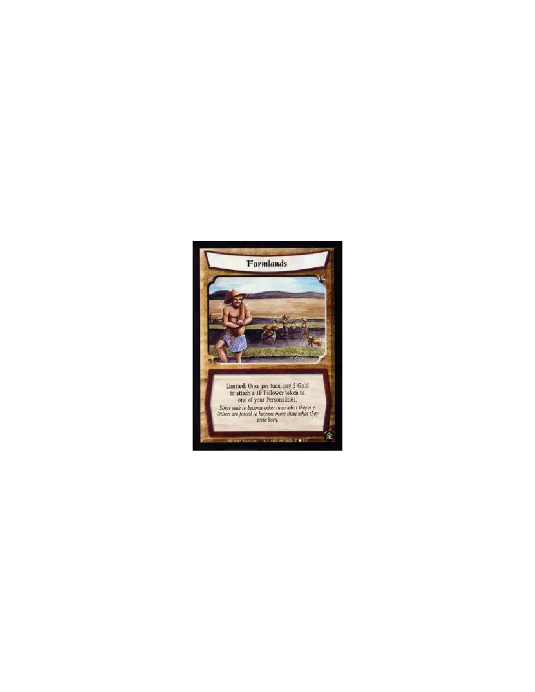 Singular Limited: Once per turn, pay 2 Gold to attach a 1F Follower token to one of your Personalities.
