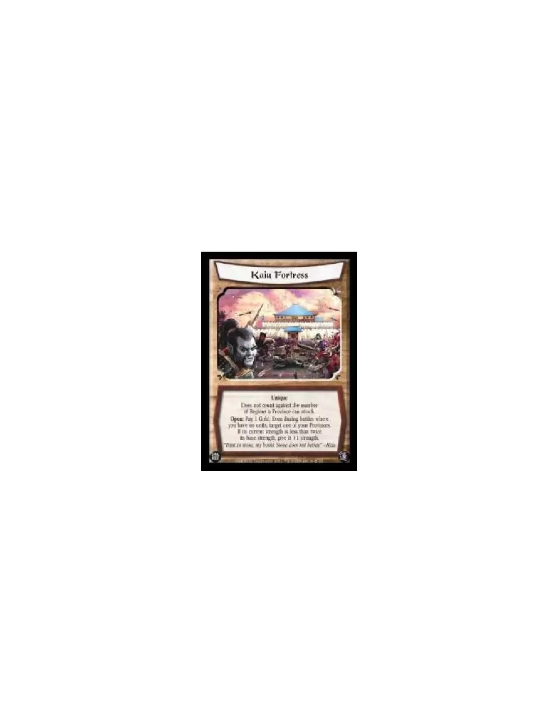 Unique. Does not count against the number of Regions a Province can attach. Open: Pay 1 Gold. Even during battles where you have no units, target one of your Provinces. If the current strength is less than twice its base strength, give it +1 strength.