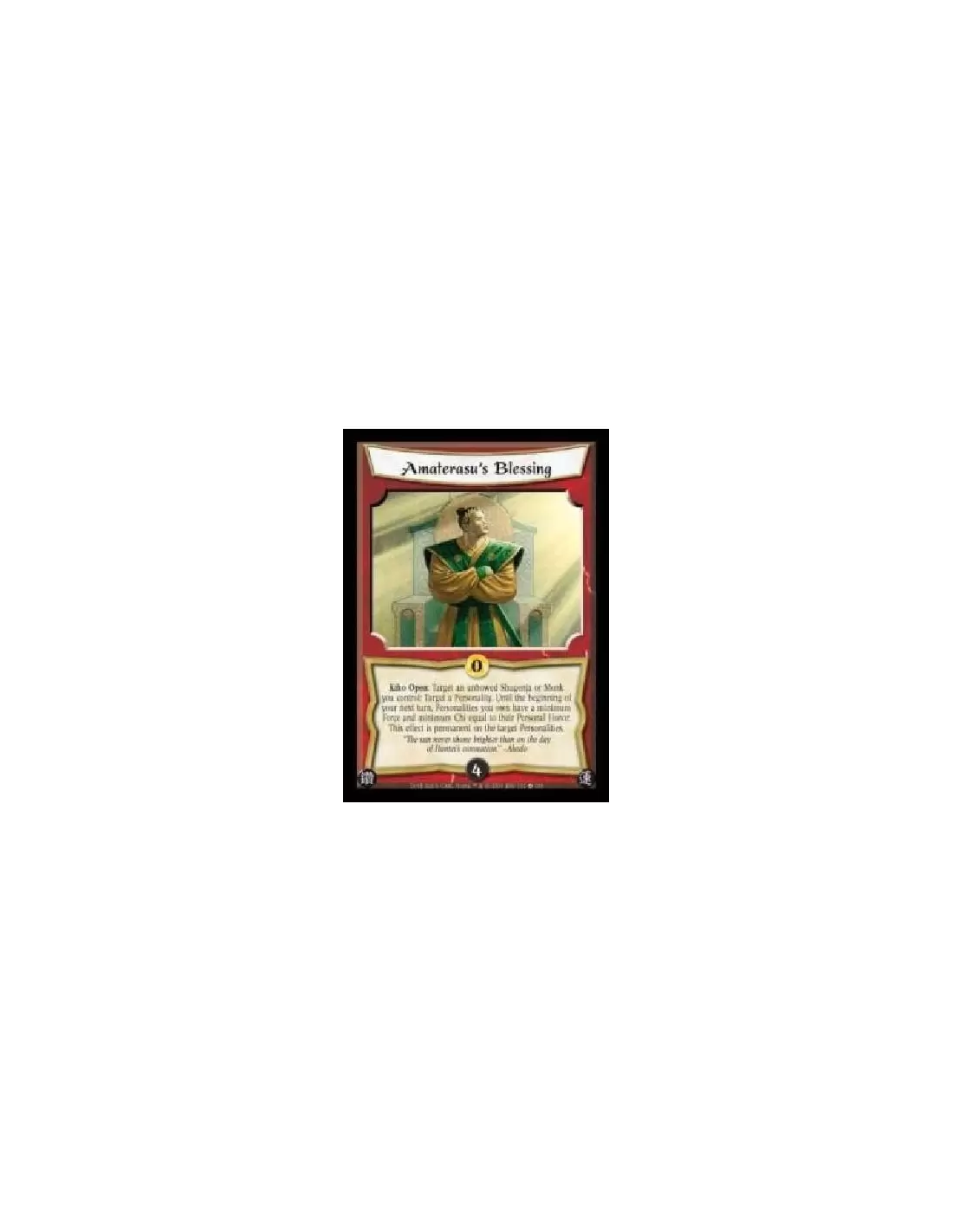 Kiho Open: Target an unbowed Shugenja or Monk you control: Target a Personality. Until the beginning of your next turn, Personalities you own have a minimum Force and minimum Chi equal to their Personal Honor. This effect is permanent on the target Personalities.