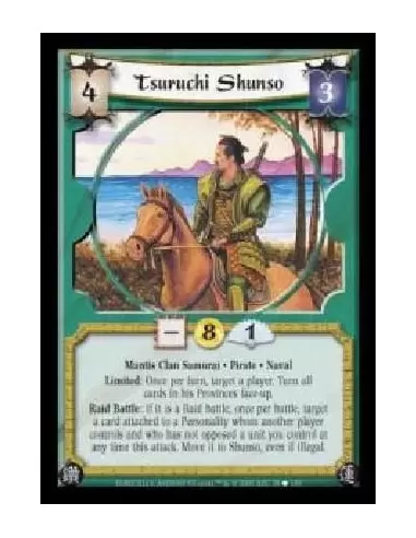 Mantis Clan Samurai · Pirate · Naval. Limited: Once per turn, target a player. Turn all cards in his Provinces face-up. Raid Battle: If it is a Raid battle, once per battle, target a card attached to a Personality whom another player controls and who has not opposed a unit you control at any time this attack. Move it to Shunso, even if illegal.