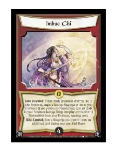Kiho Reaction: Before battle resolution destroys one of your Provinces, target a face-up Shugenja in one of your Provinces: If you control no Personalities, turn all cards in your Provinces face-up. Bring into play any number of Personalities from your Provinces, ignoring costs. Kiho Limited: Bow a Shugenja you control: Draw an additional card during your next End Phase.