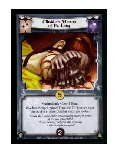 Shadowlands · Lose 3 Honor.Obsidian Mempo's printed Force and Chi bonuses equal the number of other Obsidian cards you control.