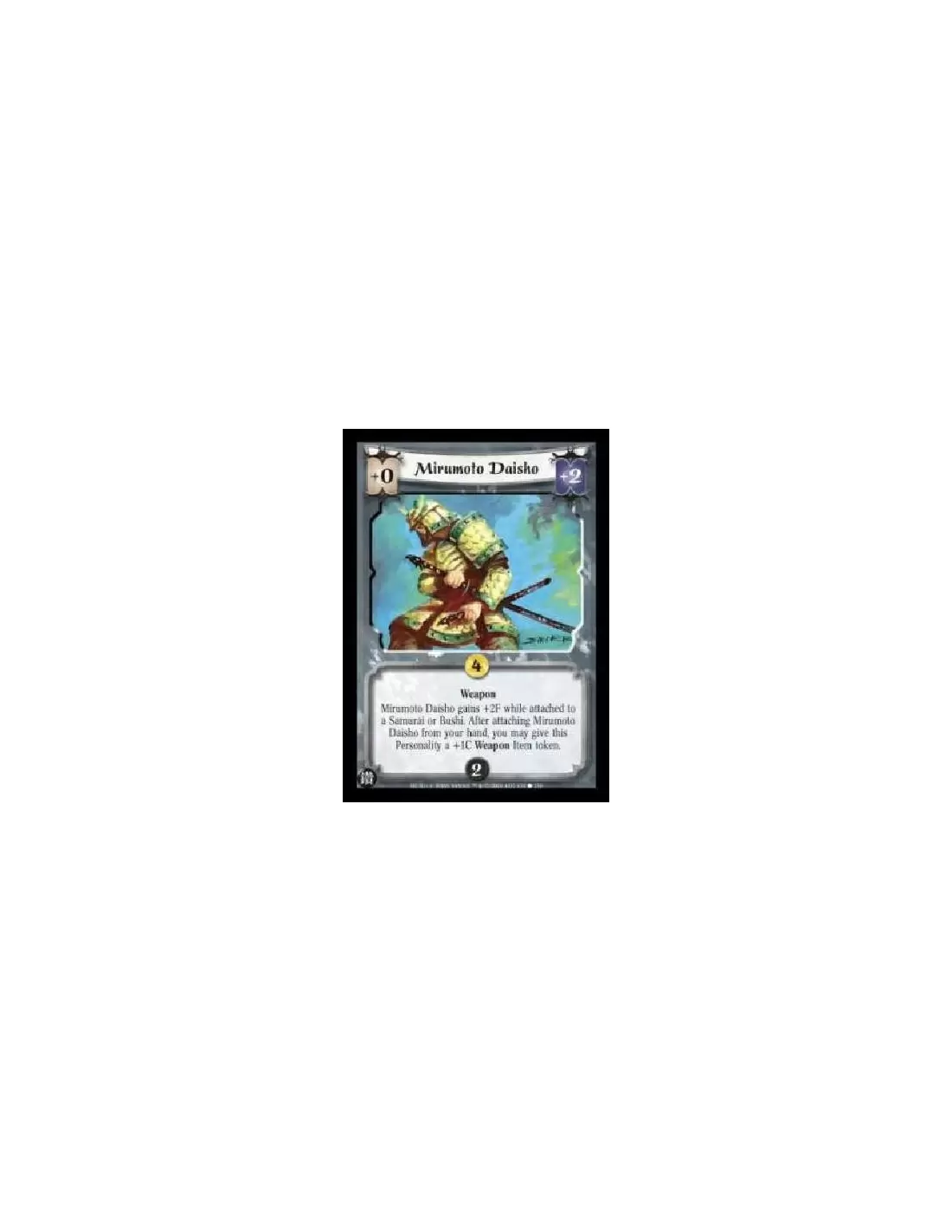 Weapon Mirumoto Daisho gains +2F while attached to a Samurai or Bushi. After attaching Mirumoto Daisho from your hand, you may give this Personality a +1C Weapon Item token.