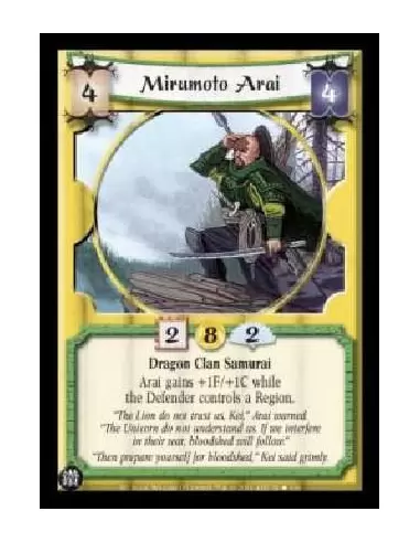 Dragon Clan Samurai Arai gains +1F/+1C while the Defender controls a Region.