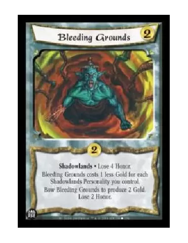 Shadowlands . Lose 4 Honor. Bleeding Grounds costs 1 less Gold for each Shadowlands Personality you control. Bow Bleeding Grounds to produce 2 Gold. Lose 2 Honor.