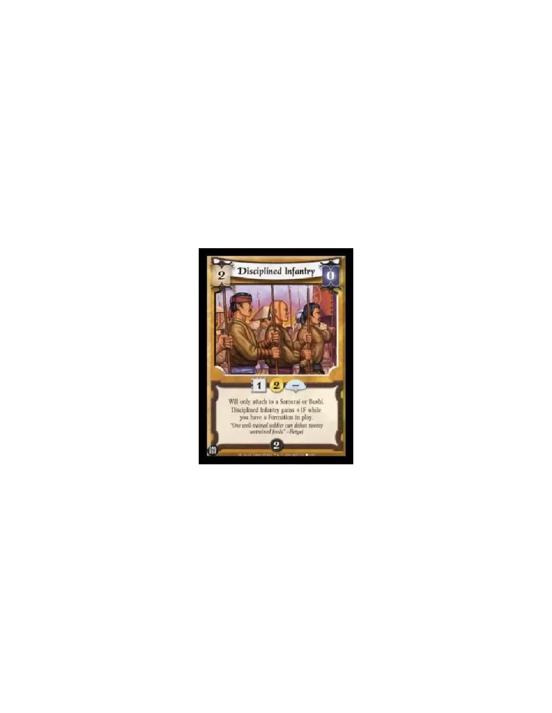 Will only attach to a Samurai or Bushi. Disciplined Infantry gains +1F while you have a Formation in play.