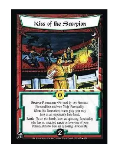 Reserve Formation . Formed by two Samurai Personalities and one Ninja Personality. When this Formation enters play, you may look at an opponent's fate hand. Battle: Twice this Battle, bow an opposing Personality who has no attached cards, or bow one of your Personalities to bow an opposing personality.