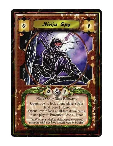 Battle/Open: Any number of times per turn, bow Ninja Spy and target a player: Look at his hand. Lose 1 Honor.