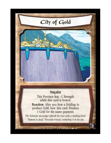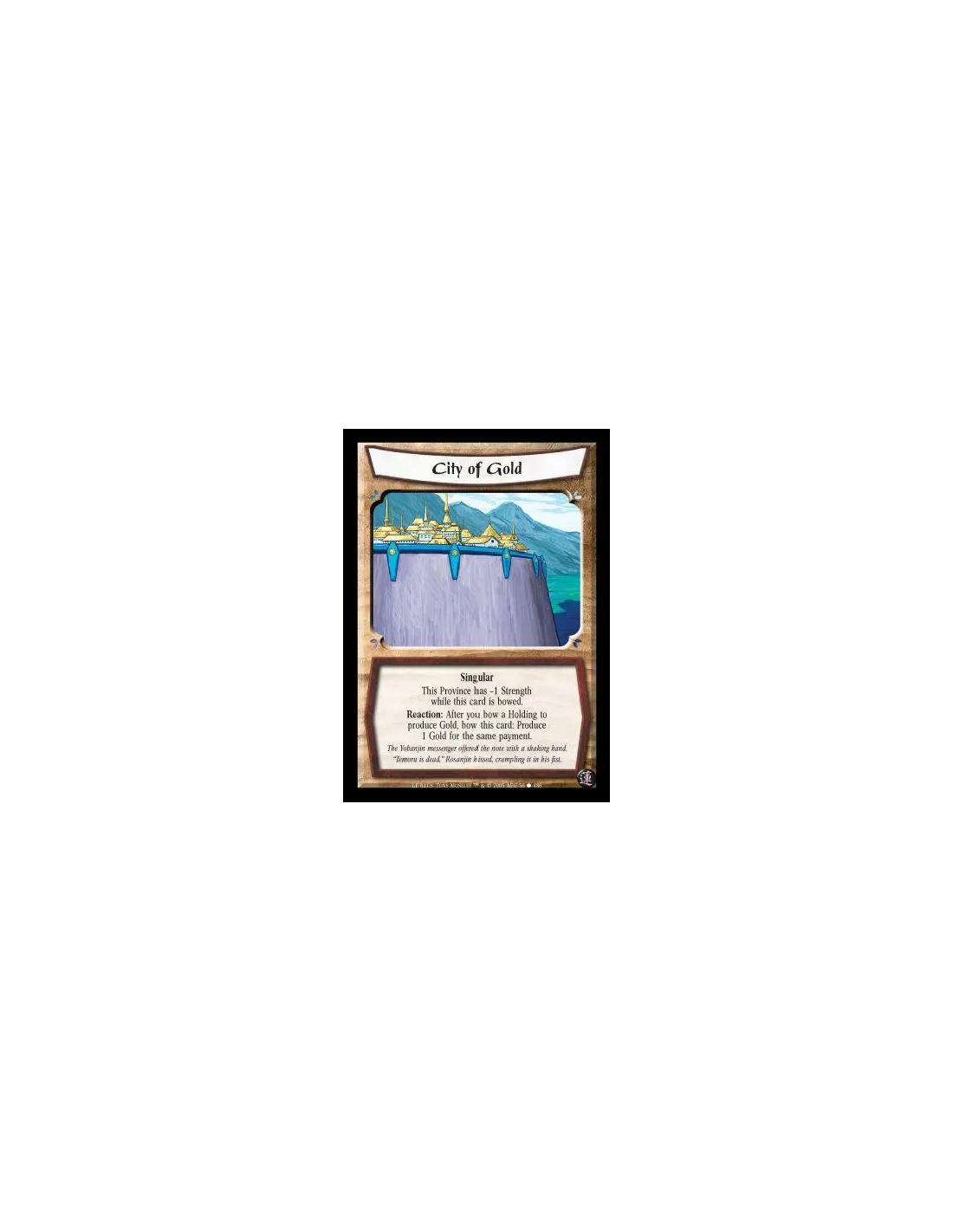 Singular. This Province has -1 Strength while this card is bowed. Reaction: After you bow a Holding to produce Gold, bow this card: Produce 1 Gold for the same payment