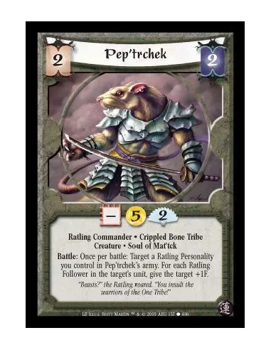 Ratling Commander · Crippled Bone Tribe · Creature · Soul of Mat'tck. Battle: Once per battle: Target a Ratling Personality you control in Pep'trchek's army. For each Ratling Follower in the target's unit, give the target +1F