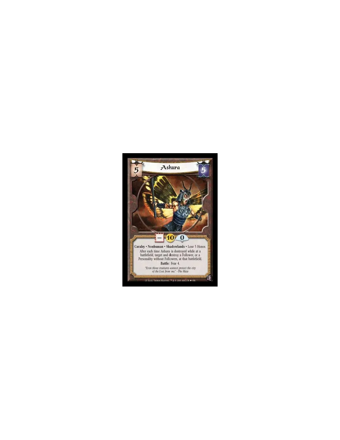 Cavalry · Nonhuman · Shadowlands · Lose 5 Honor. After each time Ashura is destroyed while at a battlefield, target and destroy a Follower, or a Personality without Followers, at that battlefield. Battle: Fear 4