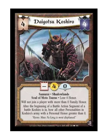 Samurai · Shadowlands · Soul of Moto Tsume · Lose 4 Honor. Will not join a player with more than 0 Family Honor. After the beginning of a Battle Action Segment of a battle Koshiro is in, bow all other Personalities in Koshiro's army with a Personal Honor greater than 0