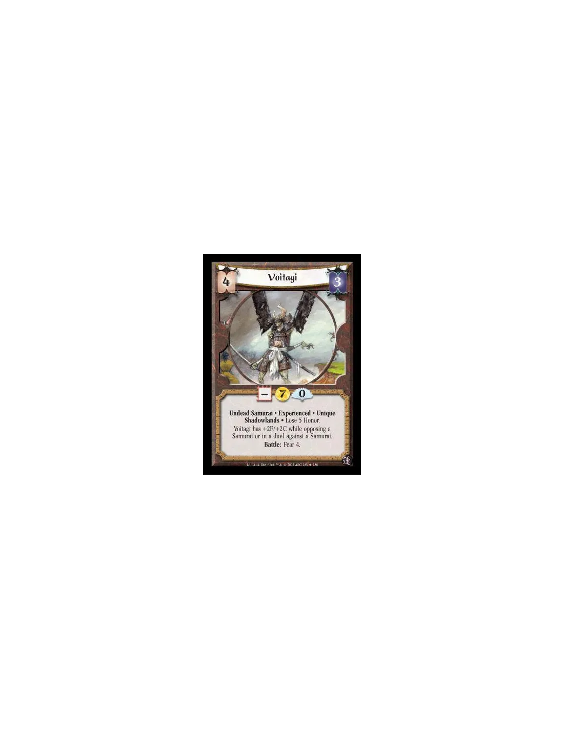 Undead Samurai · Experienced · Unique · Shadowlands · Lose 5 Honor. Voitagi has +2F/+2C while opposing a Samurai or in a duel against a Samurai. Battle: Fear 4.