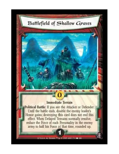Immediate Terrain. Political Battle: If you are the Attacker or Defender: Until the battle ends double the enemy leader's Honor gains; destroying this card does not end this effect. When Delayed Terrains normally resolve, reduce the Force of each Personality in the enemy army to half his Force at that time, rounded up