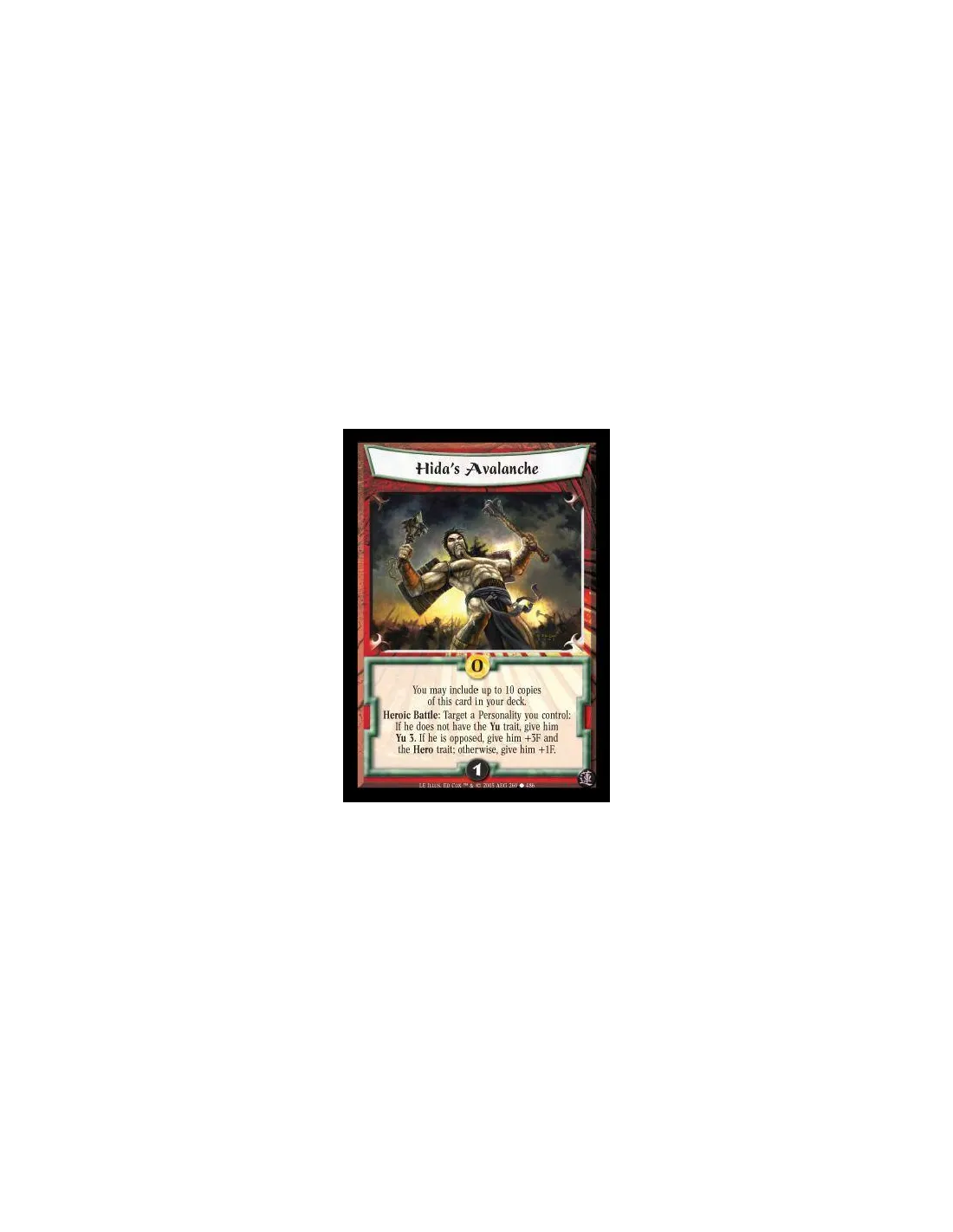 You may include up to 10 copies of this card in your deck. Heroic Battle: Target a Personality you control: If he does not have the Yu trait, give him Yu 3. If he is opposed, give him +3F and the Hero trait; otherwise, give him +1F