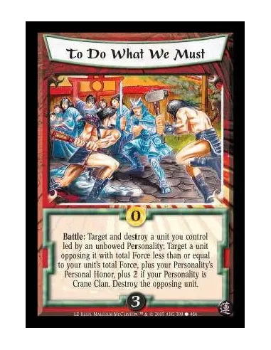 Battle: Target and destroy a unit you control led by an unbowed Personality: Target a unit opposing it with total Force less than or equal to your unit's total Force, plus your Personality's Personal Honor, plus 2 if your Personality is Crane Clan. Destroy the opposing unit.