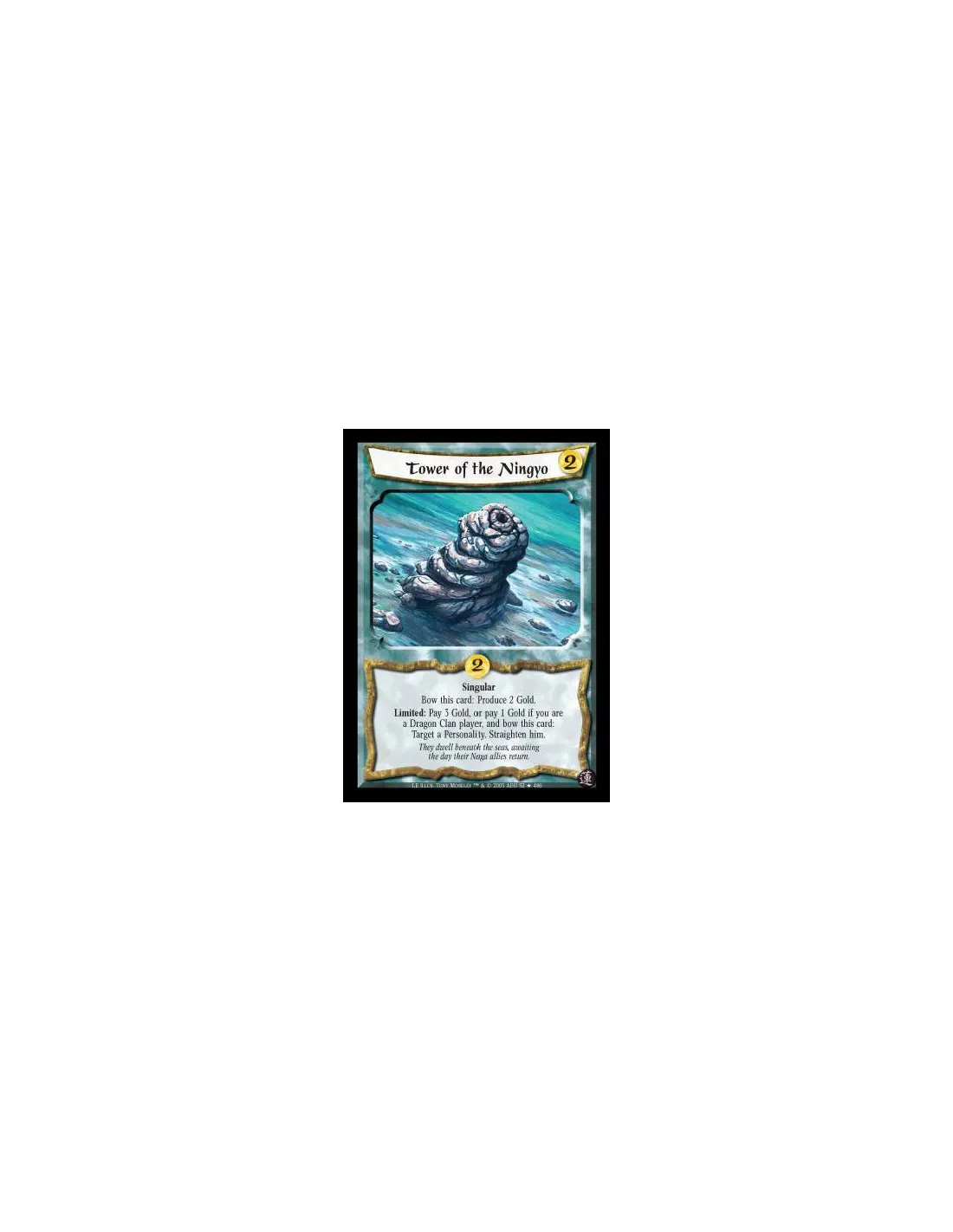 Singular. Bow this card: Produce 2 Gold. Limited: Pay 3 Gold, or pay 1 Gold if you are a Dragon Clan player, and bow this card: Target a Personality. Straighten him