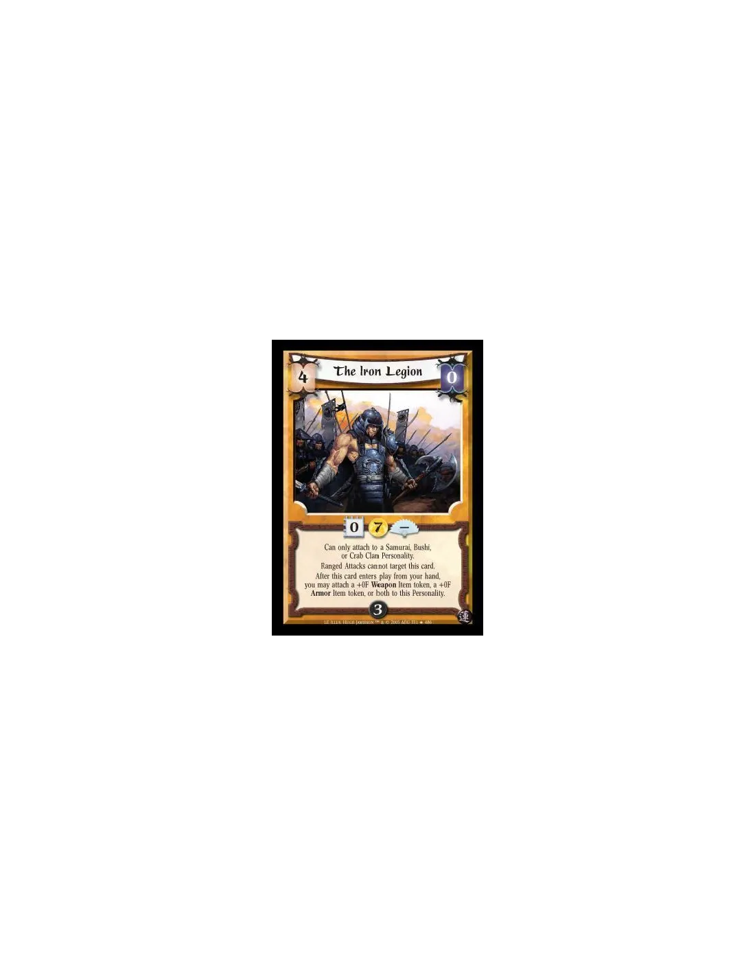 Will only attach to a Samurai, Bushi, or Crab Clan Personality. Ranged Attacks cannot target this card. After this card enters play from your hand, you may attach a +0F Weapon Item token, a +0F Armor Item token, or both to this Personality