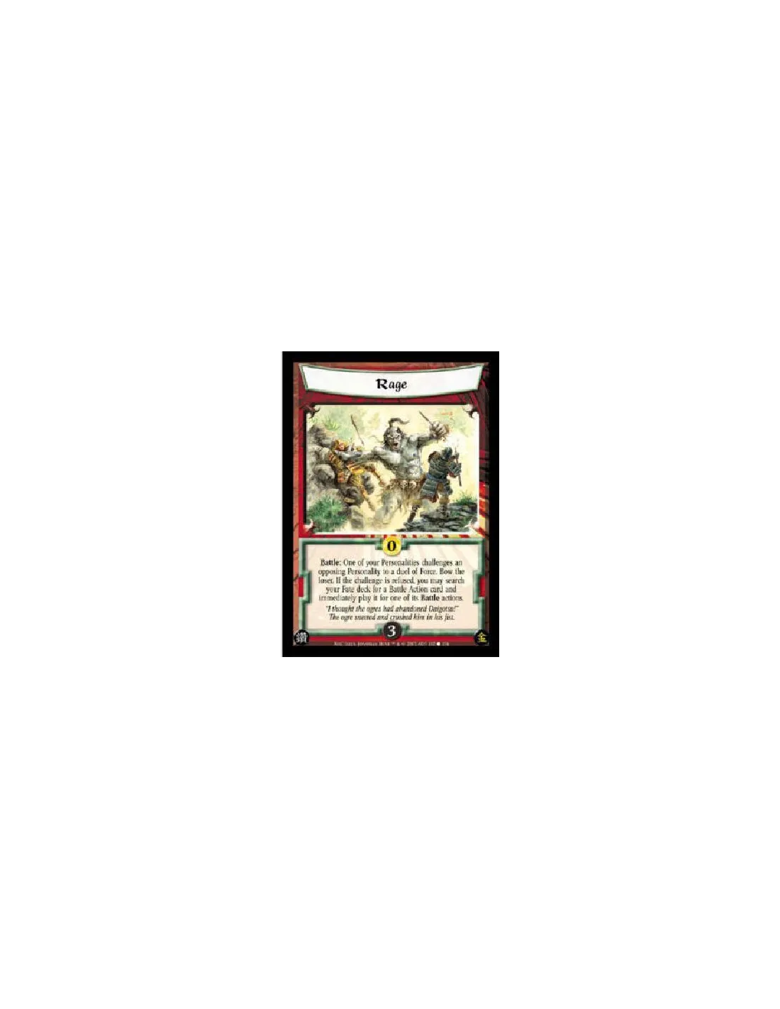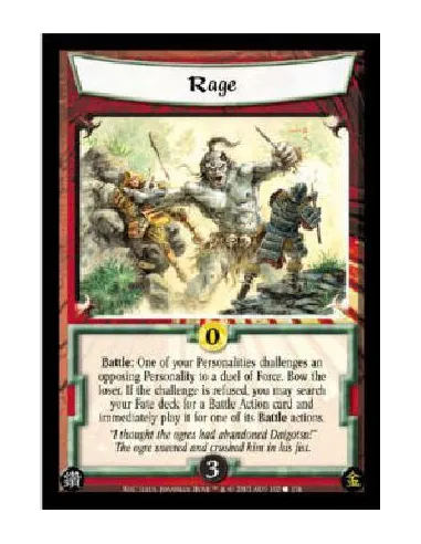 Battle: One of your Personalities challenges an opposing Personality to a duel of Force. Bow the loser. If the challenge is refused, you may search your Fate deck for a Battle Action card and immediately play it for one of its Battle actions.