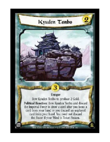 Unique Bow Kyuden Tonbo to produce 2 Gold. Political Reaction: Bow Kyuden Tonbo and discard the Imperial Favor to draw a card after you focus a card from your hand or you discard an unplayed card from your hand. You need not discard the Favor if your Wind is Toturi Sezaru.