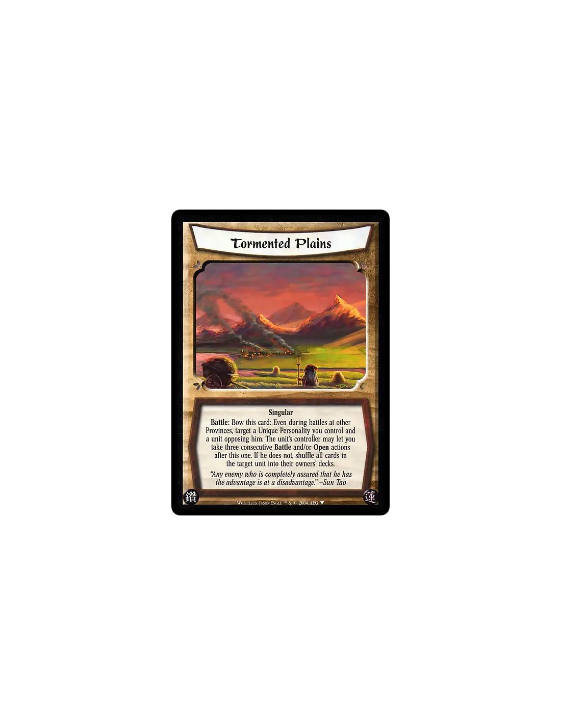Singular Battle: Bow this card: Even during battles at other Provinces, target a Unique Personality you control and a unit opposing him. The unit's controller may let you take three consecutive Battle and/or Open actions after this one. If he does not, shuffle all cards in the target unit into their owners' decks.