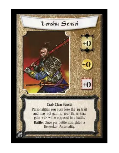 Crab Clan Sensei Personalities you own lose Yu trait and may not gain it. Your Bersekers gain +2F while opposed in a battle. Battle: Once per battle, straighten a Beserker Personality.