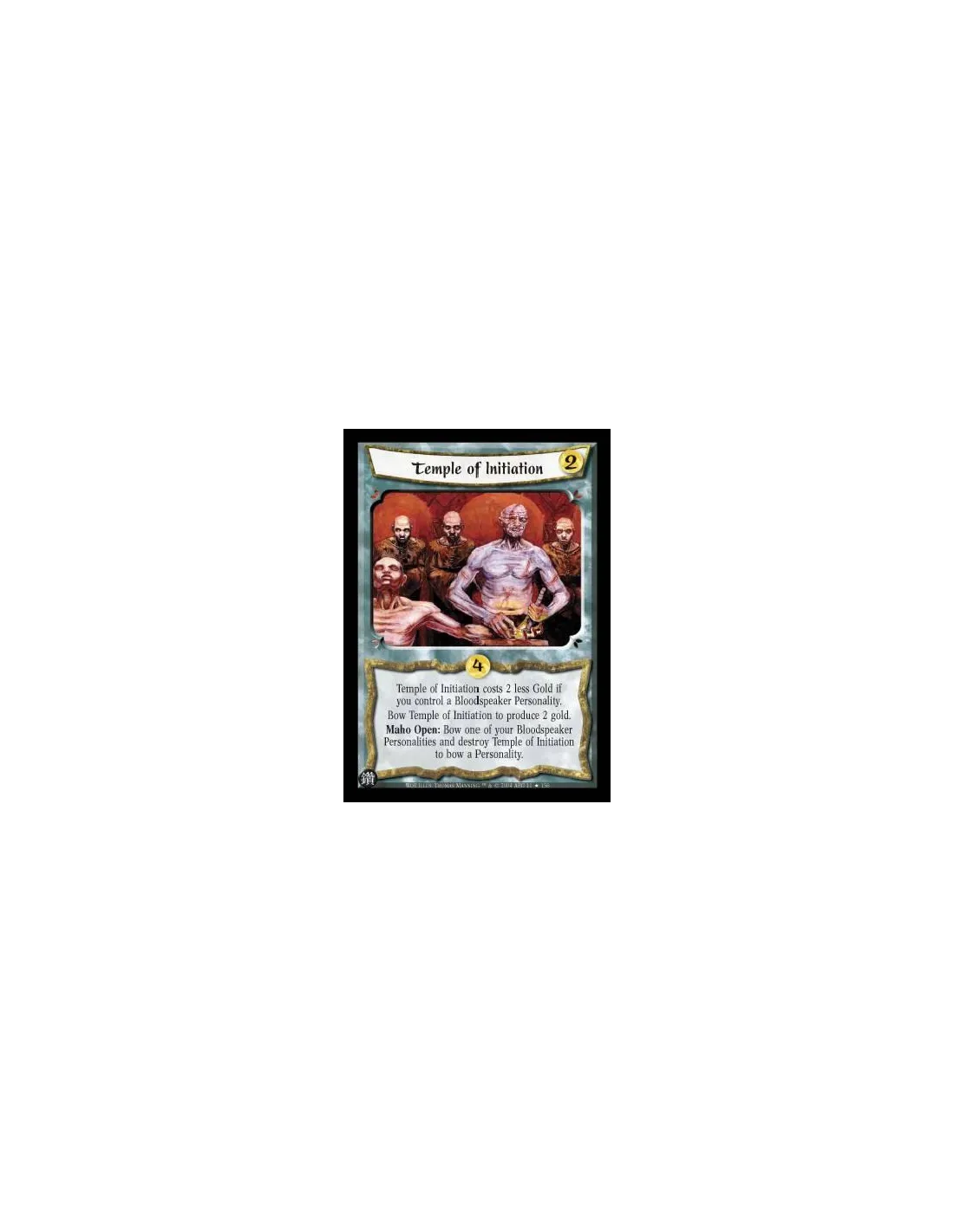 Temple of Initiation cost 2 less Gold if you control a Bloodspeaker Personality. Bow Temple of Initiation to produce 2 Gold. Maho Open: Bow one of your Bloodspeaker Personalities and destroy Temple of Initiation to bow a Personality.