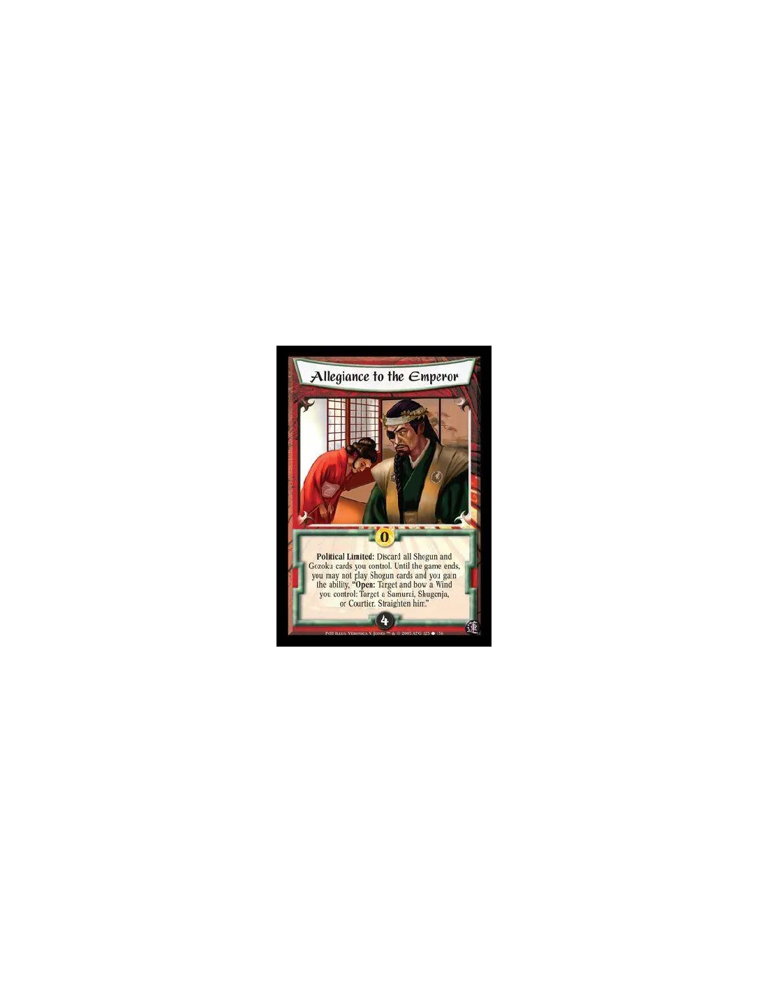 Political Limited: Discard all Shogun and Gozoku cards you control. Until the game ends, you may not play Shogun cards and you gain the ability, ?Open: Target and bow a Wind you control: Target a Samurai, Shugenja, or Courtier. Straighten him.?