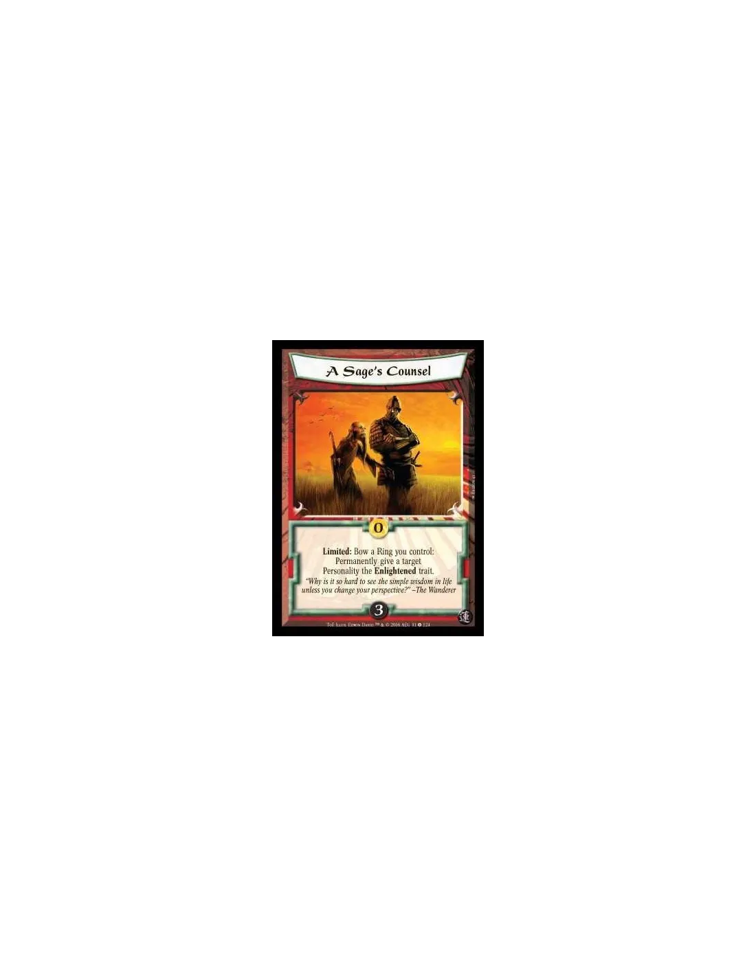 Limited: Bow a Ring you control: Permanently give a target Personality the Enlightened trait.