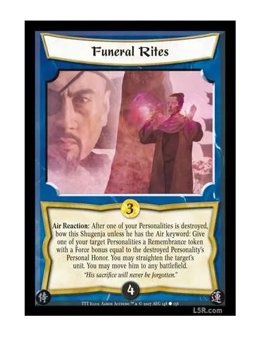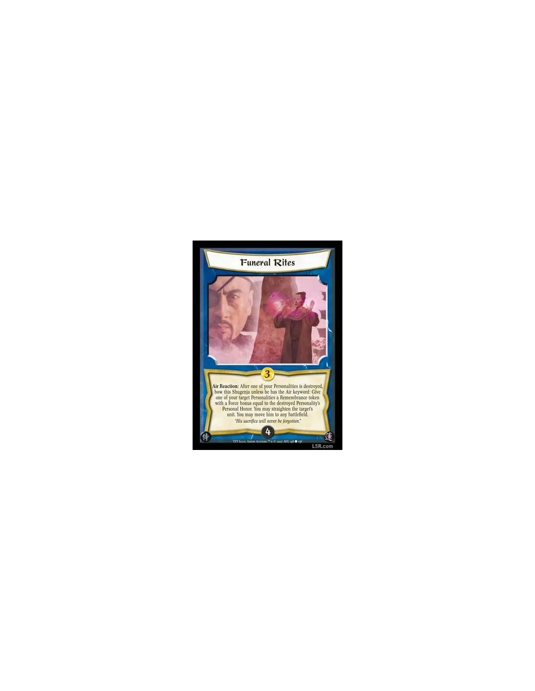 Air Reaction: After one of your Personalities is destroyed, bow this Shugenja unless he has the Air keyword: Give one of your target Personalities a Remembrance token with a Force bonus equal to the destroyed Personality's Personal Honor. You may straighten the target's unit. You may move him to any battlefield
