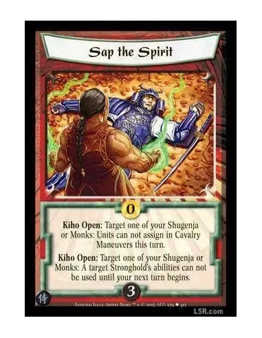 Kiho Open: Target one of your Shugenja or Monks: Units cannot assign in Cavalry Maneuvers this turn. Kiho Open: Target one of your Shugenja or Monks: A target Stronghold's abilities cannot be used until your next turn begins.