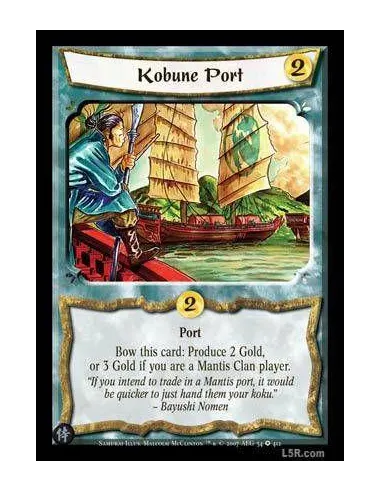 Port. Bow this card: Produce 2 Gold, or 3 Gold if you are a Mantis Clan player.