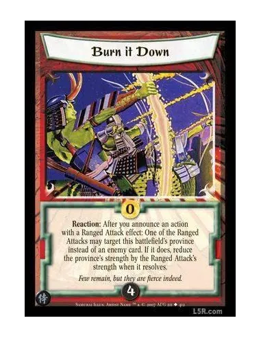Reaction : After you announce an action with a Ranged Attack effect: One of the Ranged Attacks may target this battlefield's province instead of an enemy card. If it does, reduce the province's strength by the Ranged Attack's strength when it resolves.
