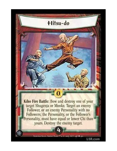 Kiho Fire Battle : Bow and destroy one of your target Shugenja or Monks: Target an enemy Follower, or an enemy Personality with no Followers; the Personality, or the Follower's Personality, must have equal or lower Chi than yours. Destroy the enemy target.