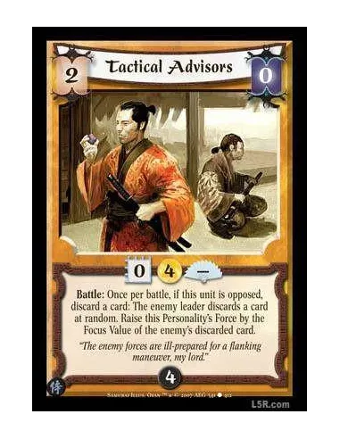 Battle : Once per battle, if this unit is opposed, discard a card: The enemy leader discards a card at random. Raise this Personality's Force by the Focus Value of the enemy's discarded card.