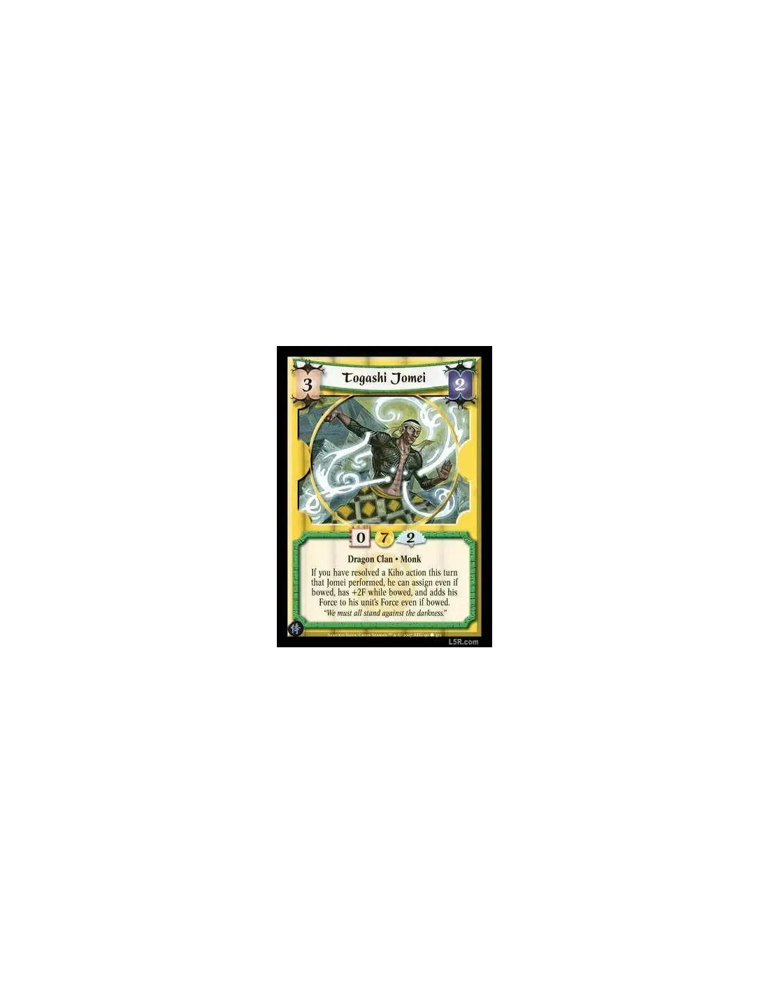 Dragon Clan · Monk If you have resolved a Kiho action this turn that Jomei performed, he can assign even if bowed, has +2F while bowed, and adds his Force to his unit's Force even if bowed.