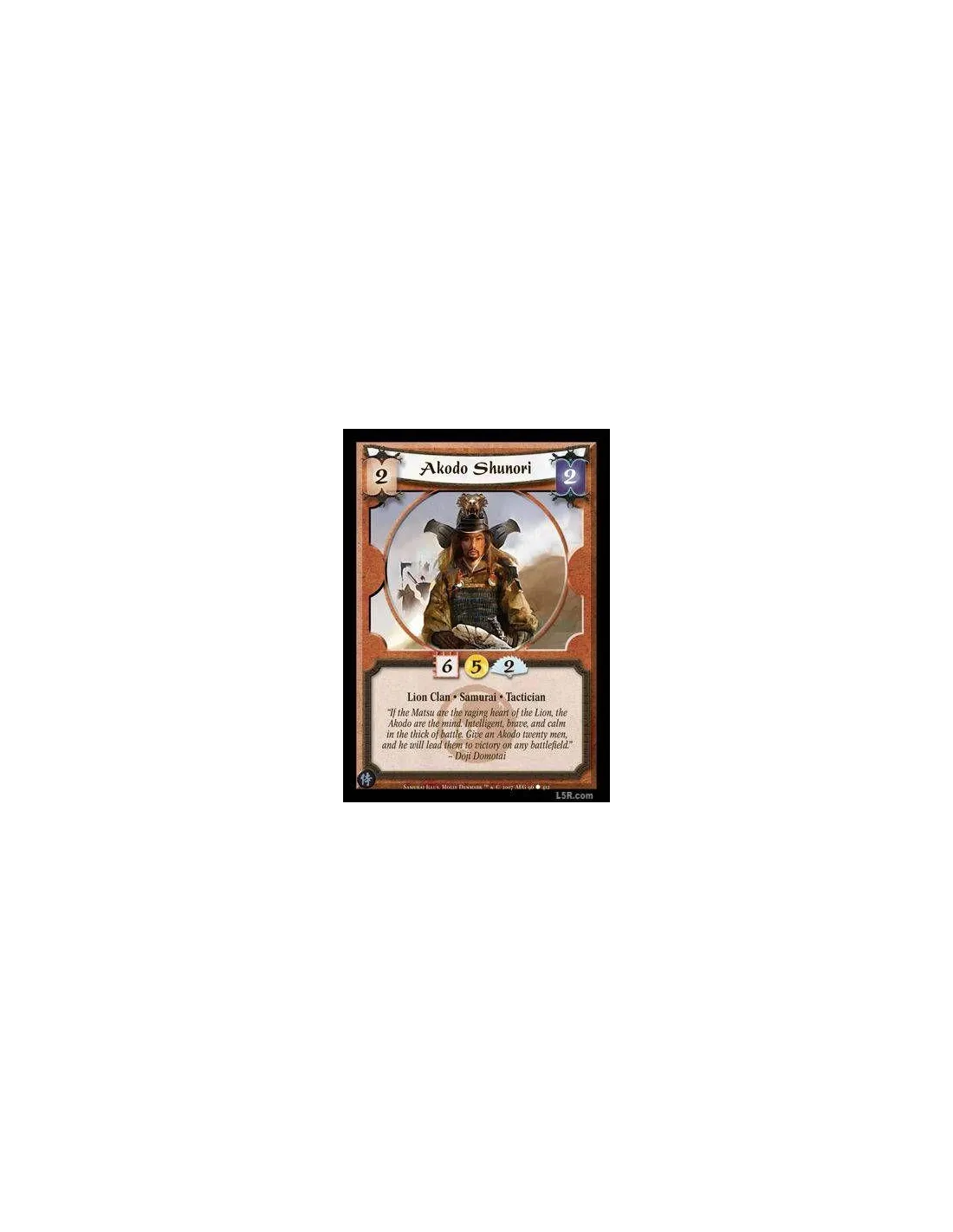 ?If the Matsu are the raging heart of the Lion, the Akodo are the mind. Intelligent, brave, and calm in the thick of battle. Give an Akodo twenty men, and he will lead them to victory on any battlefield.? ?Doji Domotai