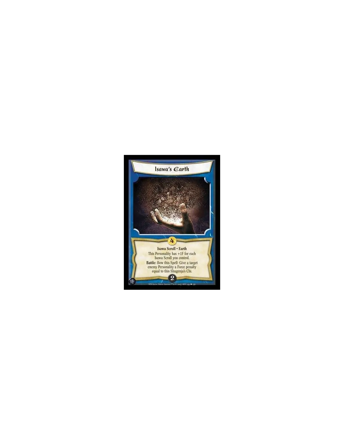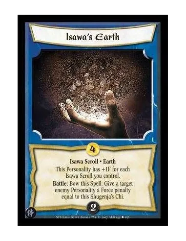 Isawa Scroll · Earth This Personality has +1F for each Isawa Scroll you control. Battle: Bow this Spell: Give a target enemy Personality a Force penalty equal to this Shugenja's Chi