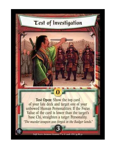 Test Open: Show the top card of your fate deck and target one of your unbowed Human Personalities: If the Focus Value of the card is lower than the target’s base Chi, straighten a target Personality.